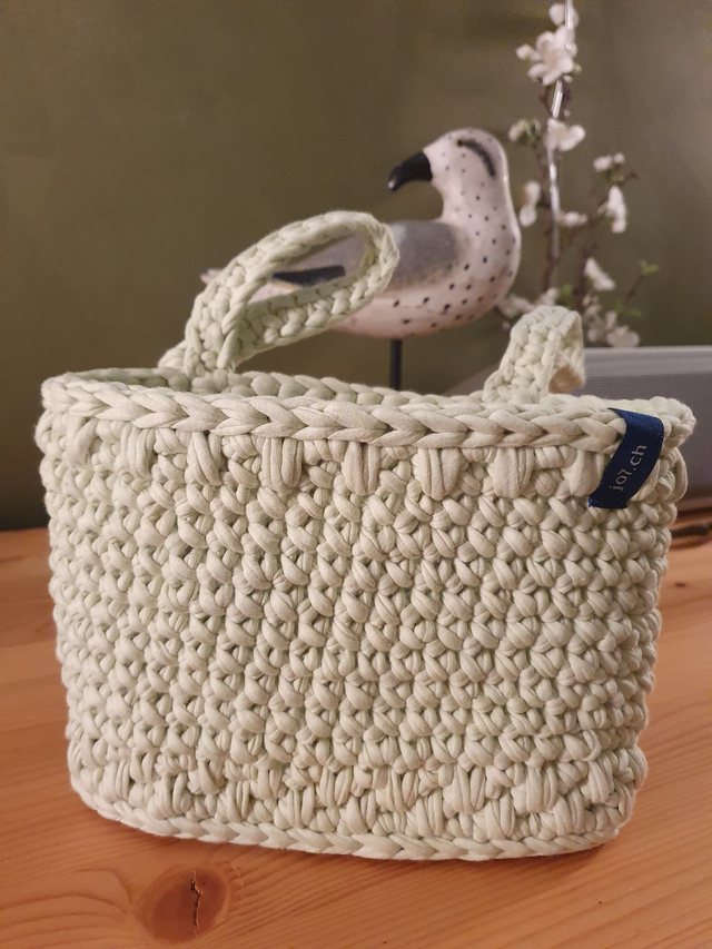 Pastell Mint farbener ovaler Hängekorb mit 2 Laschen. 21 cm breit 15 cm hoch Boden 9 cm breit. Kann am Fahrard oder Badezimmer Küche usw angehängt werden.